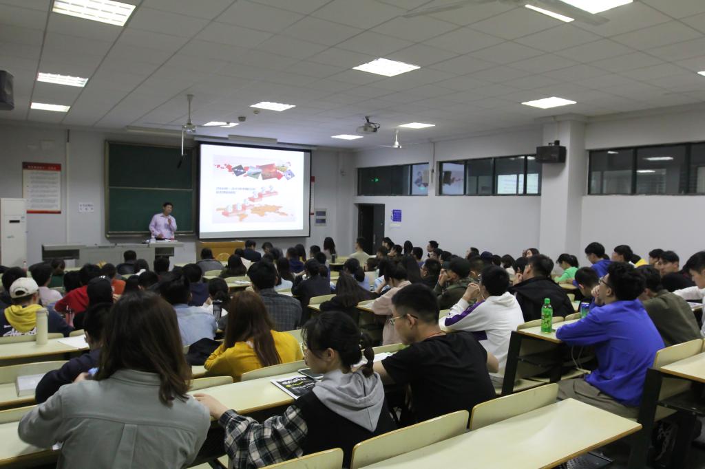 4月15日是我国第四个“全民国家安全教育日”。为帮助我校大学生认清国家能源安全形势、增强能源危机忧患意识、树立总体国家安全理念,并努力做到立报国之志、增建国之才、践爱国之行,当天晚上7:00整,我院开设的思政公选课《谁来给中国“加油”——中国石油安全的困境与出路》第三讲在我校4002教室开讲。校长王存文作为特邀嘉宾,以“变化中的能源格局”为主题进行生动的课堂讲授,近100名选课本科生和30多名慕名而来的本科生研究生共同聆听了这堂别开生面、精彩纷呈的思政公选课。课堂教学活动由舒先林教授主持。
